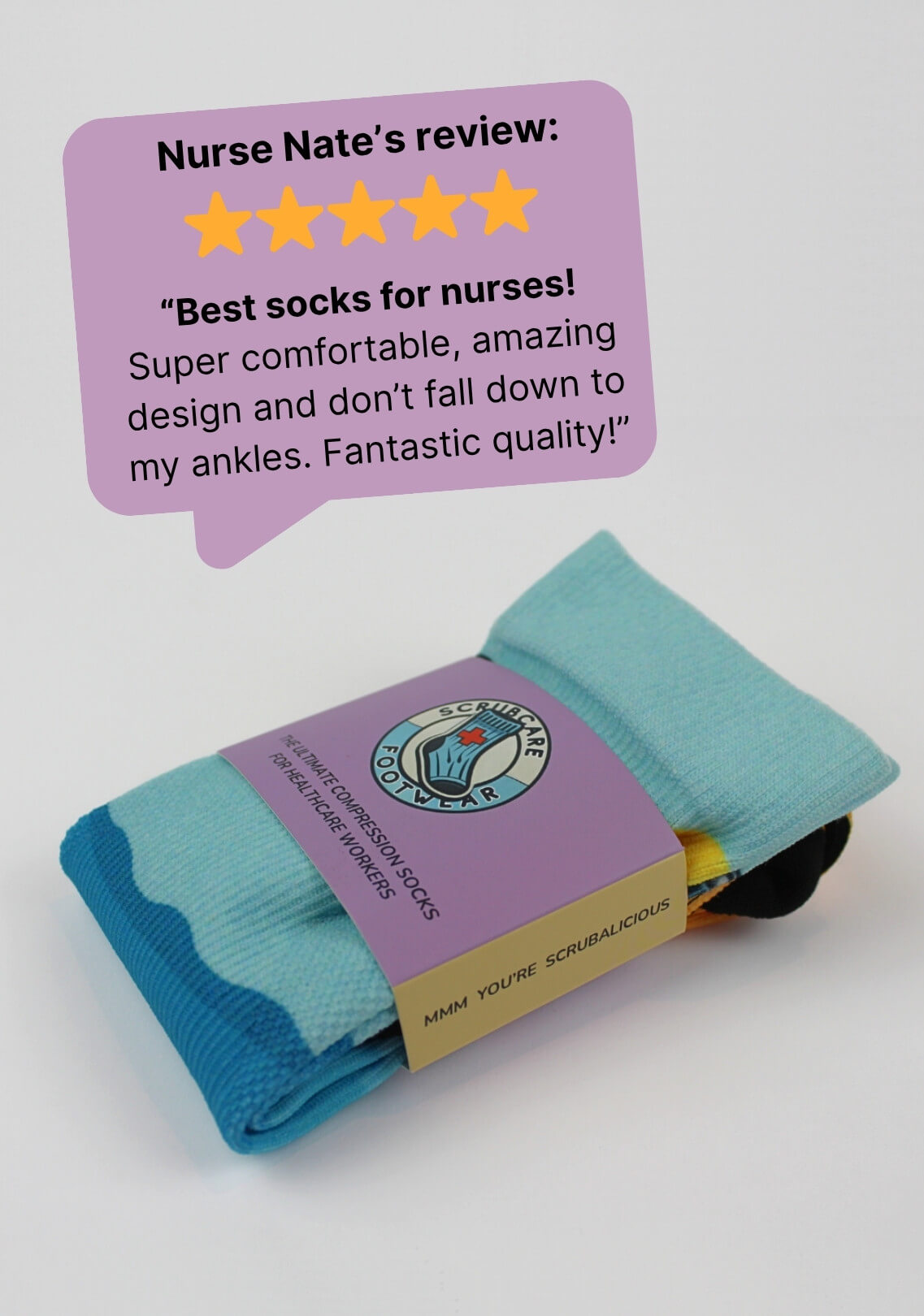 We built our compression socks for one thing. Standing 8–12 hours in a hospital setting. Not for running, travelling, or your nana’s bingo night (love you, Nan). We make socks for healthcare pros only. They’re breathable, compressed, and built for comfort. They’ve got your back on the hardest shifts and toughest floors.